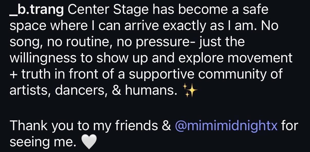 It’s where you get to practice being seen exactly as you are—nerves and all—by people who are doing the same thing.